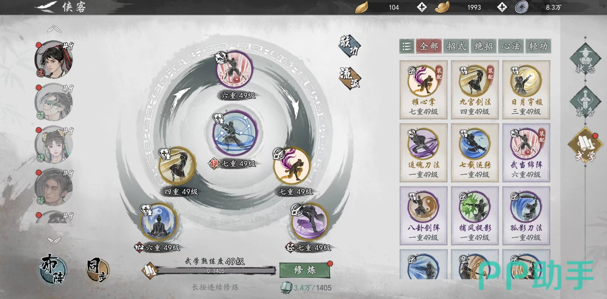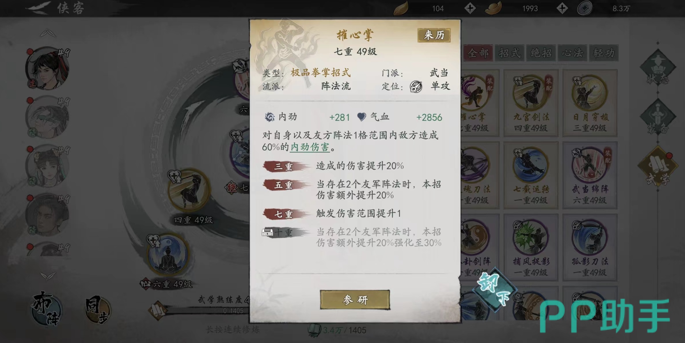 第1个向大家推荐的是武当阵法流,特点是范围伤害很高,主要依靠阵法来打输出。这一项玩法的核心是催心掌,也是所有功法中最值得提升的一个,它的效果是在出场时所有阵法均能打出100%伤害,如果三个战法同时存在并包围对手,就可以实现伤害最大化。催心掌达到七重时,攻击范围增加,加大了包围的可能。另外功法选择还有七星剑阵、武当绵掌、八步赶蝉等,随从方面一定要带芊芊,芊芊携带八卦剑阵。芊芊本身治疗就很给力,是该玩法不可缺少的选项。