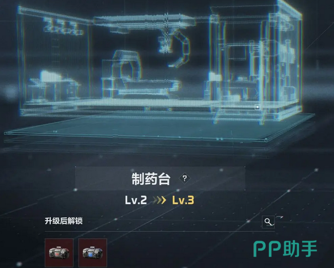 最后一个则是医疗部门。医疗部门的制药台是你的生命线。在这里,你可以直接生产医疗物资,随着制药台的升级,你将能够生产出更多种类的医疗用品,确保你在战场上的生存率。