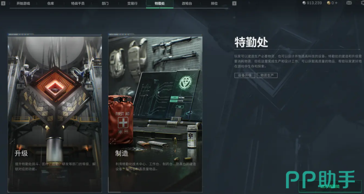 以上就是三角洲行动手游特勤处部门介绍的全部内容了。这里的各个部门就是干员们在战场上的坚实后盾。它们不仅为大家提供了必要的物资支持,还能让我们在战斗中不断提升自己。只有不断提高特勤处的各个部门的功能,才能让你在游戏的严酷环境下占据优势。