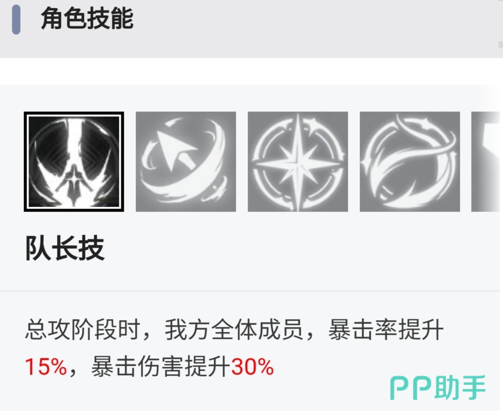 在聊狄莉丝的技能时,小编要说的是由于星落这款游戏中的每一个角色都可以成为队长,因此他们的身上都有队长技能,只不过技能的作用不一样而已,狄莉丝的队长技能不仅可以提高团队所有成员30%的暴击伤害,还可以使团队的暴击率提升15%。