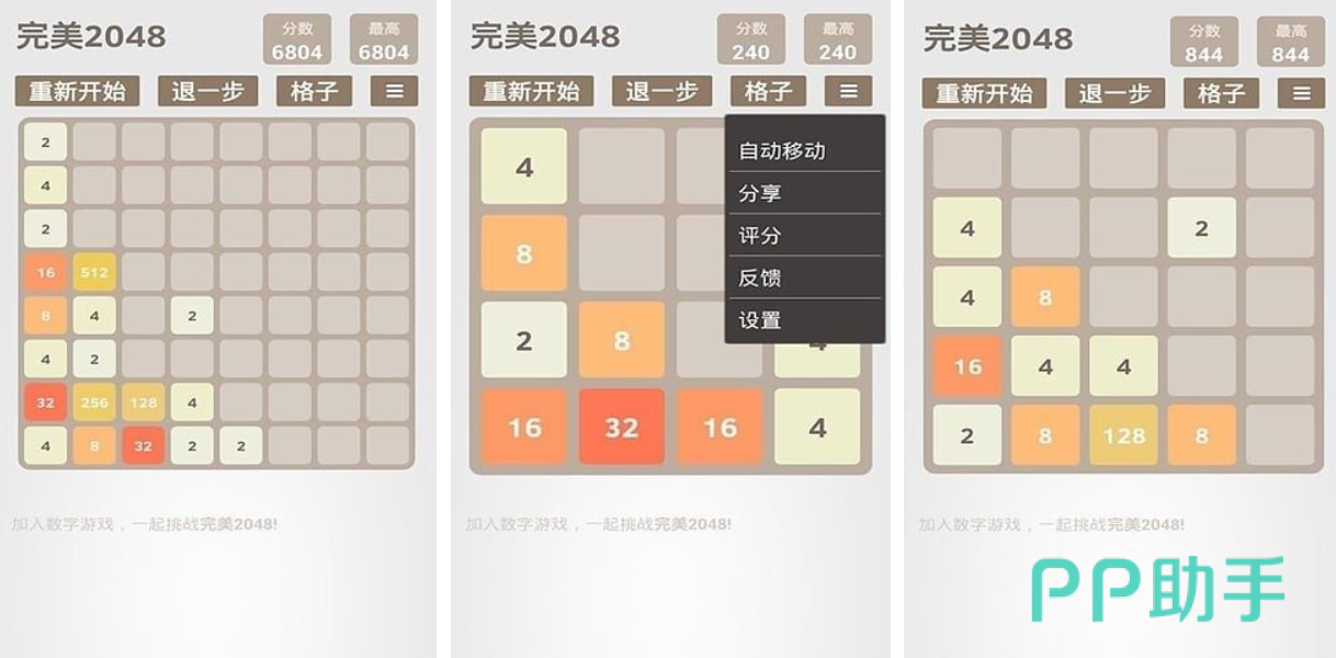 完美2048是款挑战性极强的升级版数字合成类游戏,规则超级简单只需移动方格让相同的数字融合变大即可,方块上的数字会根据合并次数增加一直到2048,经典模式、倒计时模式等特殊的2048玩法令大家久玩不腻,这款数字合成作品还推出了一个“自动移动”的选项,玩家可让AI人机代替自己移动数字达到合成2048的目的。