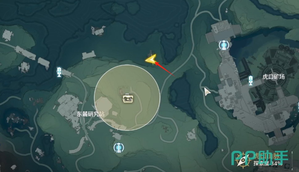 东麓研究站这个位置的区域是非常大的,但是地下入口的位置却十分的隐蔽,盲目的寻找确实很难找到方向,大家打开地图找到东麓研究站之后,点击箭头所指的位置进入。