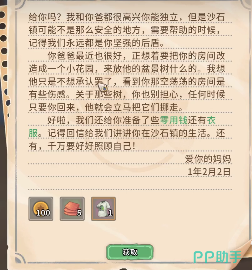 沙石镇时光,这款游戏的背景设计是在一个高度发达的科技虚拟世界中,拥有超越现实的场景,并且还真实的为大家设计了许多的居民以及NPC,整个画面效果都十分的细腻与真实,沙石镇时光妈妈的回信是什么?在游戏中,妈妈的回信还是非常重要的一个事件,她贯穿着整个游戏的剧情,接下来就为大家详细的介绍一下。