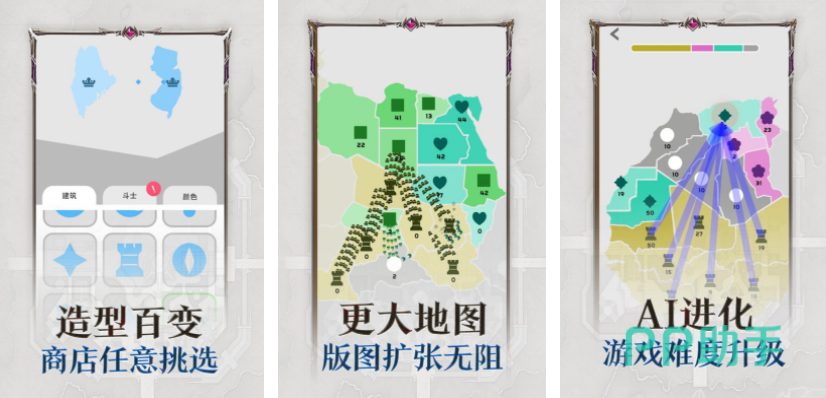 只要是军事类型的游戏都非常考验玩家的策略,帝国扩张这个游戏虽然画面的设定非常简单,但是依旧对于玩家有极强的考验性,开始游戏之后需要操控兵力进行一场及时的策略对战,既要攻占对方的城池,同时也需要努力防守,每一个市里都有自己的专属颜色,玩家需要争取让自己选择的颜色铺满整个游戏场景。