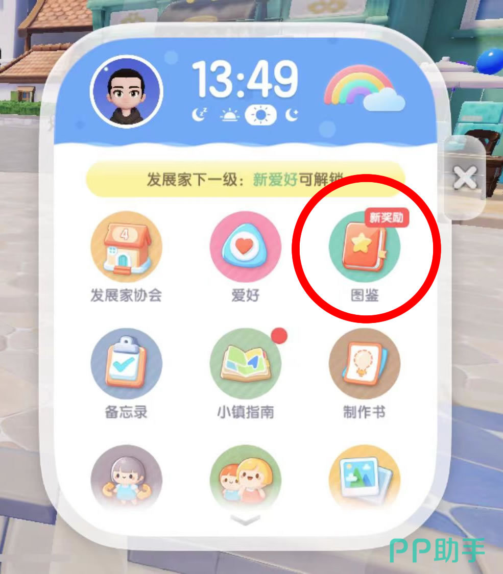 打开智能手表后,如果有新的图纸内容获得,就可以看到图鉴标志上带有“新奖励”的标记,点击图鉴进入。