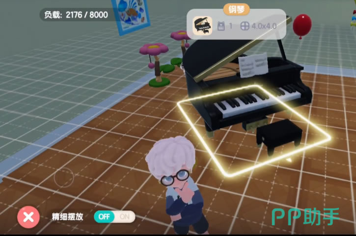 在游戏里使用工作台的速度很惊人,只过了几秒,就造完了钢琴。嗯,现实中可能最少也得好几周吧?接下来就是摆放了,钢琴的占地面积非常大,高达4*4,找个合适的位置放好吧!