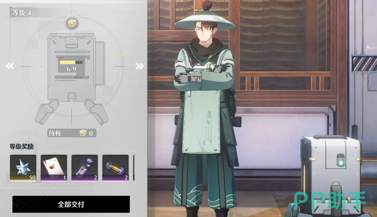 对话完之后会跳到交付页面,直接点击全部交付就完成了,大世界的到处都散落着不同的声匣,大家在集齐指定的数量之后,还可以在陈皮叔这里提升自己的古玩等级哦,古玩等级越高的话获得的奖励也会越丰富,而且到了指定的等级还能够获取一些稀有的食谱奖励呢。