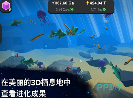 进入游戏玩家重新回到45亿年之前,当时太阳系当中几乎没有生命,就连一只小蚂蚁都不存在,地球属于非常原始的面貌。在地壳当中隐藏着很多生命以及有机化合物,随着时间的推移不断的进化,玩家将从单细胞生物升级成为多细胞生物,随着时间的推移,各种生物纷纷出现,比如鱼类、哺乳动物等等,直到出现人类,并进入下阶段。