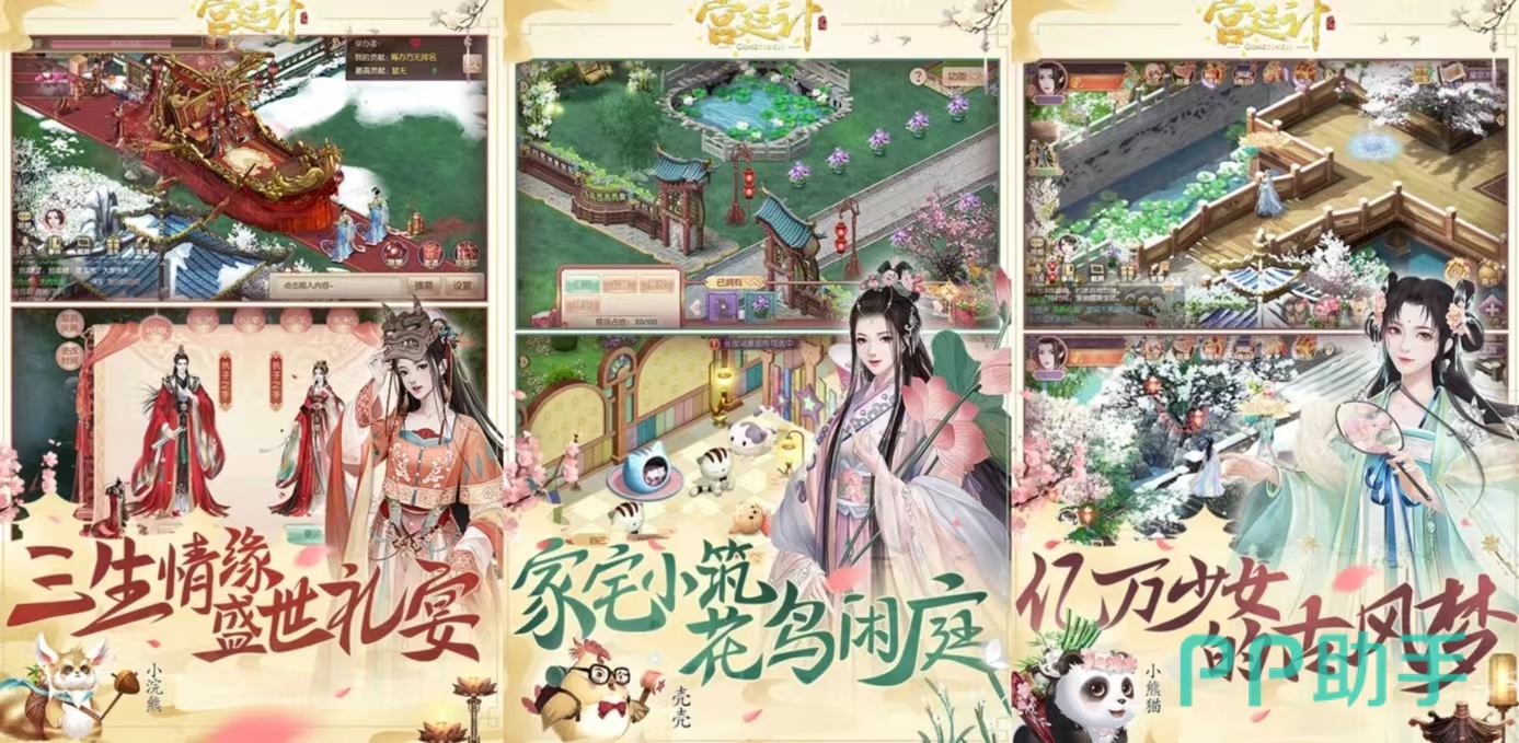 《宫廷计》游戏里面在古代皇宫里的建筑物和场景被完美的复刻,游戏里面有一个绝对开放式的地图,可以在不同的场景之间进行探索,初入宫时的角色可以进行选择,玩家需要把自己的庭院建造的越来越辉煌,在游戏里也会拥有不同的小伙伴。在宫廷中的任何家具和装饰品都可以自己选择,角色可以通过强化和提升能力。