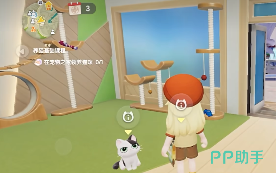 在撸猫之前大家需要先领养一只小猫咪,这时候只要接取游戏中的任务之后即可获得一只可盐可甜的小猫咪。这时需要大家寻找一名女士,她叫做琼女士。身上穿着格纹紫色的超短裙,有点时尚性感。另外还佩戴着可爱的猫耳朵以及半框紫色眼睛,大家找到她并对话即可。