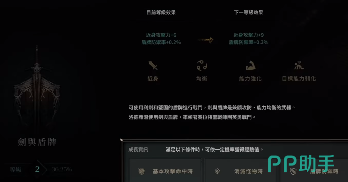 在初始的剑盾中,可以直接增加六点攻击力。若是每次升级后,即可逐步提升攻击力以及防御率。这时你可尽情地使用剑盾进行近身作战,并且能力非常均衡,可以让你攻防兼备。然后还有一定的辅助能力,使用后可以弱化对方的属性。