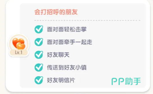 这个需要和好友进行各种互动,比方说面对面进行击掌、面对面牵着手走,或者参与特定的活动,通过这个方式也会慢慢提升亲密度,基本上只要每天找自己的好友做做动作,有活动就参与很快就能将等级提升到2级的。
