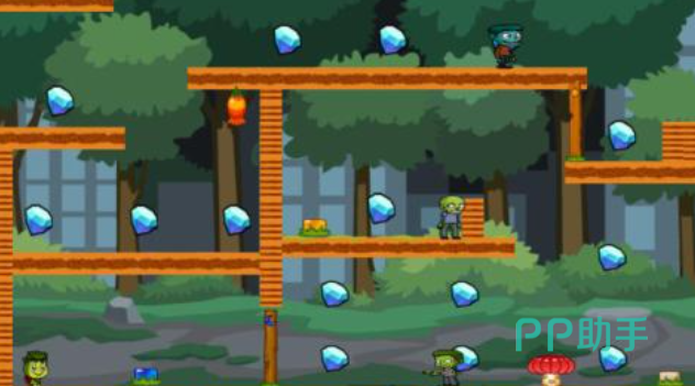 欢迎各位冰火人游戏爱好者来到全新的世界与僵尸对抗,两位玩家将变身红蓝冰火人使用特殊技能消灭大量僵尸,画面表现一如既往的生动可爱,生化主题和冰火人元素的结合可玩性也很高,地图错落有致且具有超多陷阱增加了整体难度,收集钻石并兑换各种攻击道具的设定是本作最大特色。