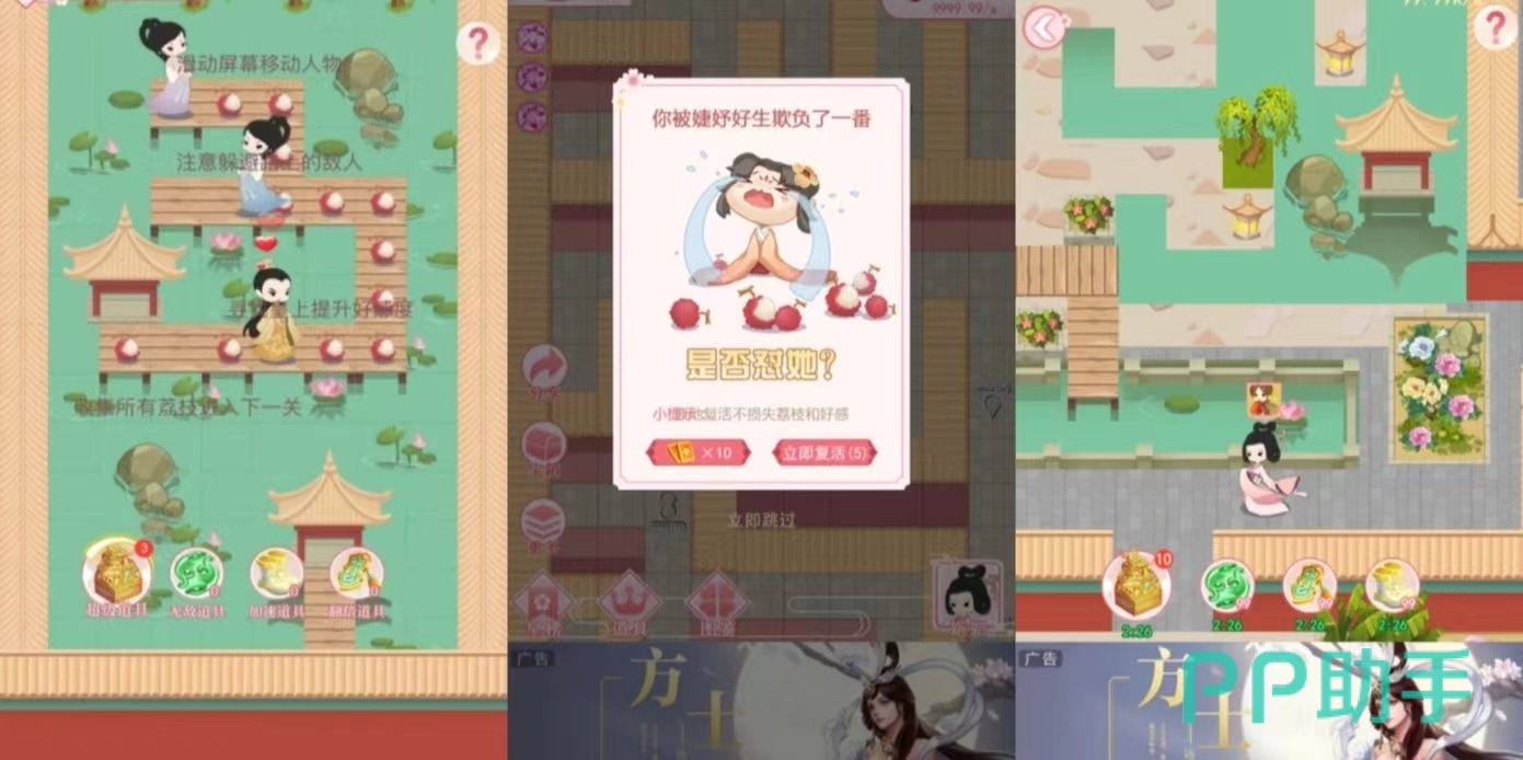 《荔妃驾到》是一个把古代作为背景的闯关游戏,玩家扮演的是一位宫女的身份,游戏里面有一个皇宫地图,需要在地图上顺利的找到荔枝,在寻找的过程中必须躲避地图上的其他宫女和嫔妃,如果被他们发现他们就会阻拦玩家。玩家顺利的的找到荔枝之后需要去交给皇帝,然后在下一次闯关中会达到不同的地图里,在不同的地图中会有不同的游戏难度。