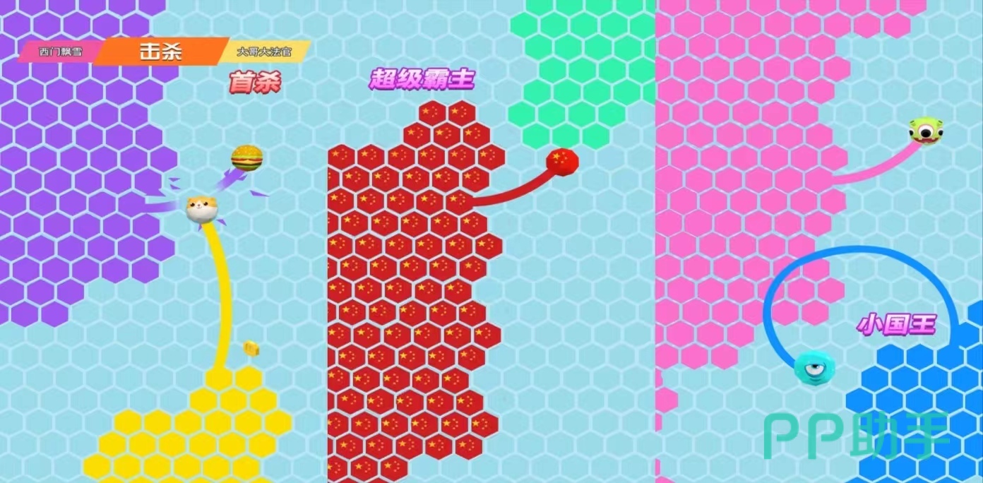 《六边形圈地大作战》玩家会和其他的对手进行领土的争夺,游戏的整个过程中是更加休闲的,玩家们需要通过画圈的方式来扩大自己的领土面积,当玩家成功的画完一圈之后需要回到领土位置,还需要把敌人不断的驱赶,或者是把敌人包围起来,也同样需要小心可能会进入敌人的圈套,游戏里面需要不断的进行生存斗争,需要和对手进行你死我亡的比拼。