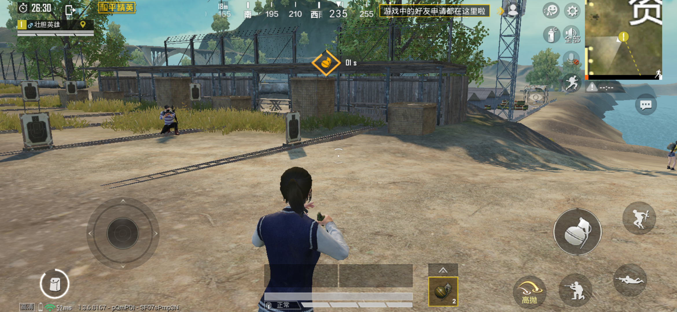 4.瞄准带有手雷标志的靶子,点击瞄准,投掷。