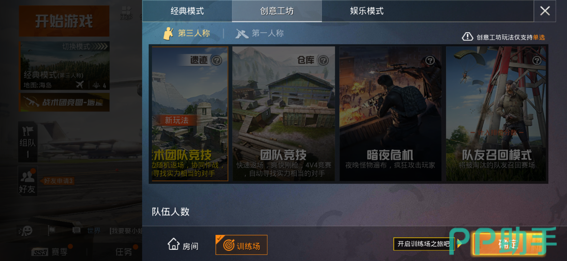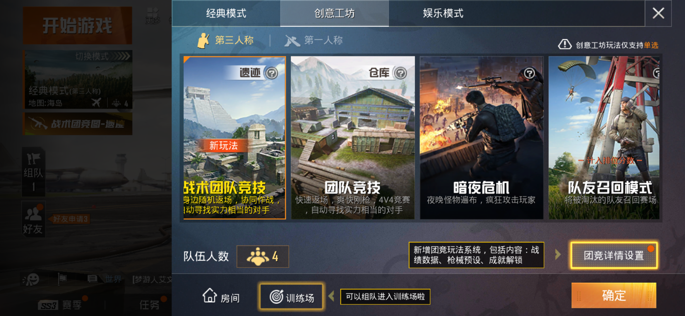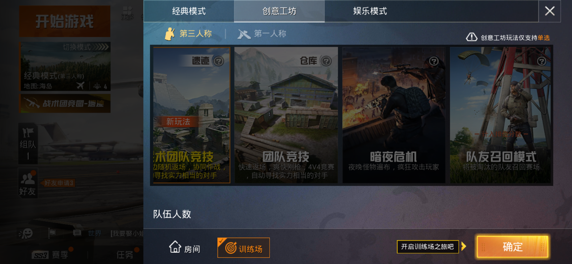1.打开和平精英主页,切换到“训练场”模式,点击进入。