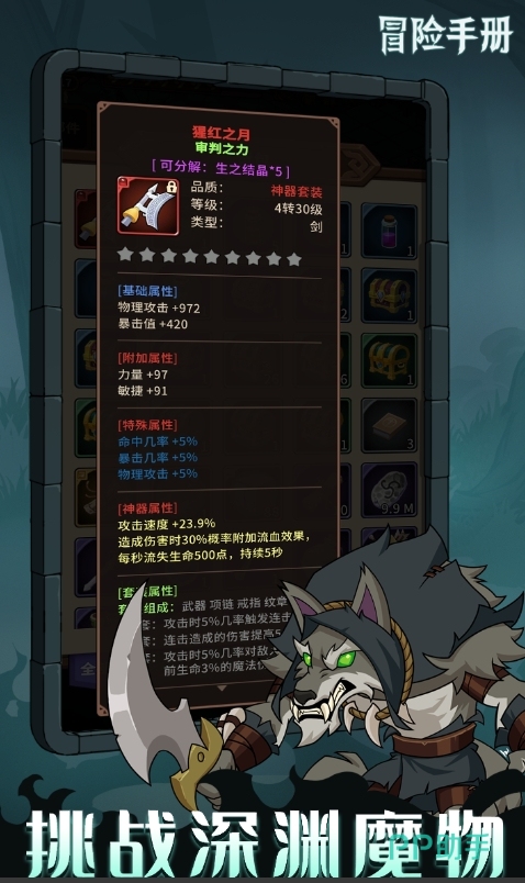 在《冒险手册》中,神秘的工匠能够铸造出具有独特属性的传奇装备,包括制式装备、专属装备、神器以及套装等。这些装备不仅显著增强英雄的战斗力,还可以通过强化、精炼和注魂等工艺进一步提升。每件装备都拥有独特的属性和技能,使得每位玩家的冒险者都显得与众不同。