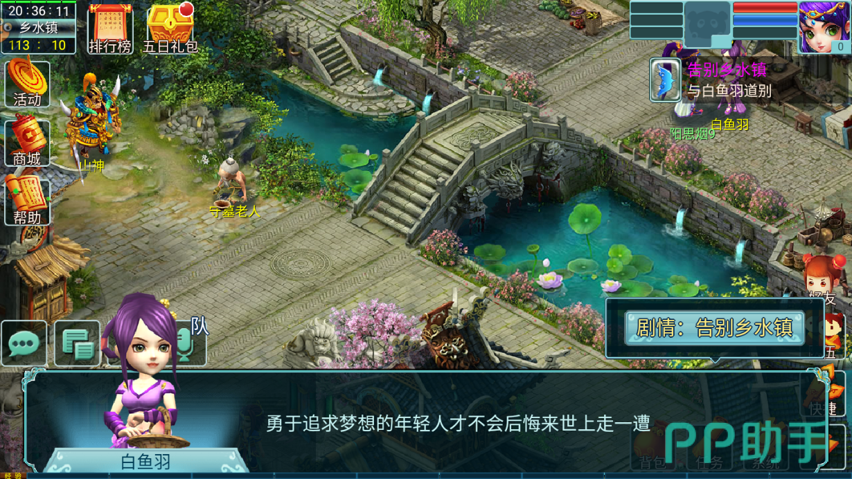 游戏开始出升在水乡镇,我们需要完成任务离开这个新手村,直接在右边的任务栏目里面查看具体的任务说明,跟着做就可以了。