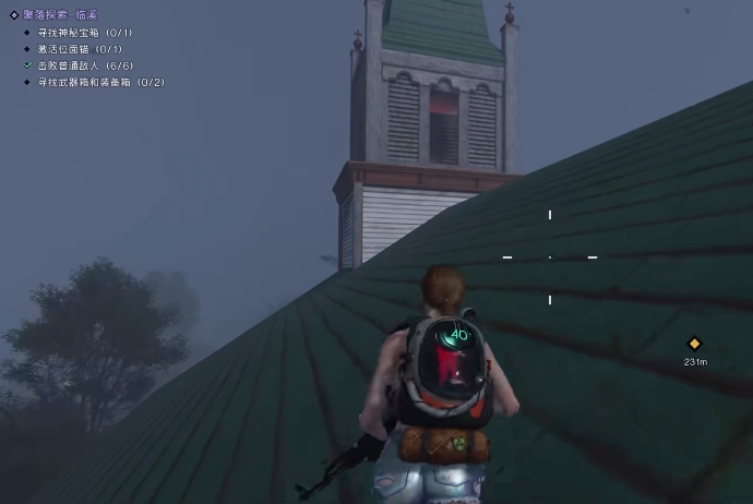在该区域的房子位置,玩家在屋檐的下面就能看到有个装备箱,此外去到教堂位置,大家也能在其中发现有个红色的箱子,打开就能获得对应的物资。