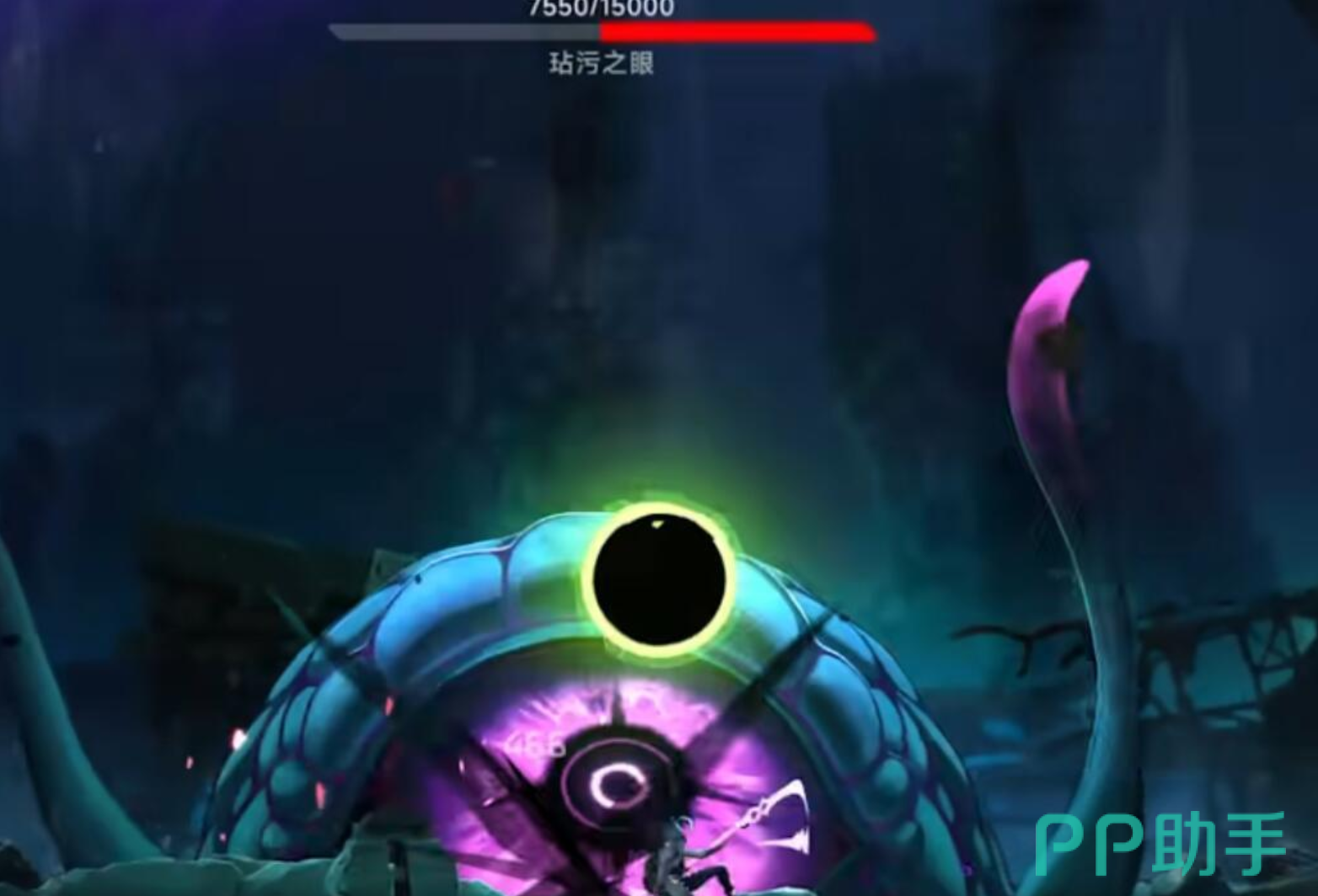当玩家顺利的通过毁灭之蛇之后,就会碰到一个大眼珠子的boss,这个boss长有特别多的触手,他拥有弹幕类的技能,能够召唤紫色的小球去攻击玩家。而小球爆开之后就能够变成多个小球,要说这个怪物被称之为玷污之眼。