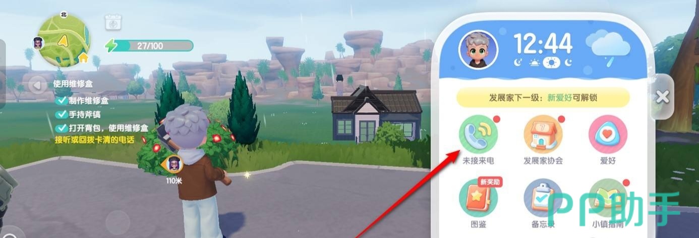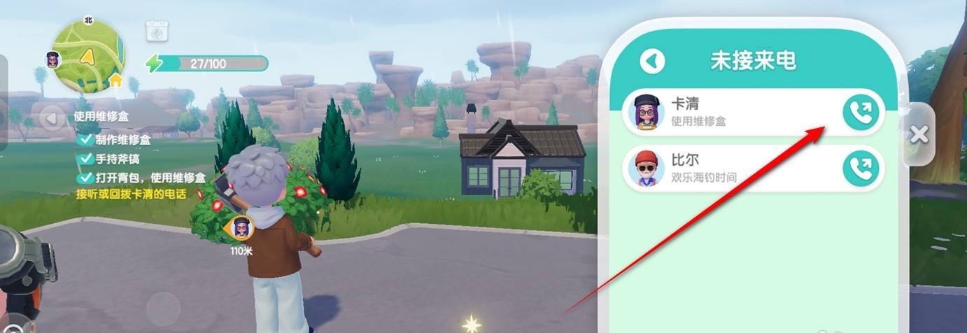 在心动小镇的手表里面只要只打开未接来电就可以看到自己没有接听电话,在未接来电的人名旁边还有一个回电话的标志,想要给对方拨电话的话只要点击一下回拨电话的标志就行。