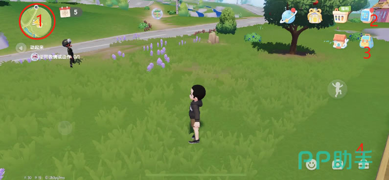 游戏界面中有很多功能按钮和区域。一开始作为新手,我们只需要掌握4个基础部分,其他功能随着游戏的进行,会逐步学会和了解。第一个是位于左上角的圆形,是方便大家在游戏中寻路和探索的地图功能;第二额是位于右上角的智能手表,如同真实的一样,里面储存着各种信息图鉴知识;第三个是位于智能手表下的包裹,存储玩家在游戏中获得的食材、材料、家具等各种道具;第四个是位于右下角的半透明白色工具箱,其中放着所有玩法所需使用的工具。