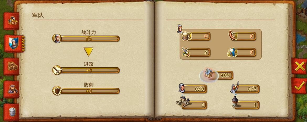 所以在兵力上并没有单独的从事军事的人员,都是村民自发加入的,所以在增加兵营的时候还要注意下人口的把控和工作分配的问题。士兵们是不会帮忙种粮食的,所以想要不被强盗打死之前,还是先屯好一部分的粮食,分配好大家的工作,留出一部分人员专门对付强盗。