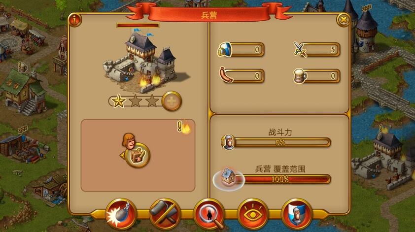 这样才能够对应起不停变得强大的强盗。当兵营有了一定的规模后会派出特遣部队去捣毁强盗的窝点,虽然后续还是会出现强盗,但是短时间内城镇变得太平多了。