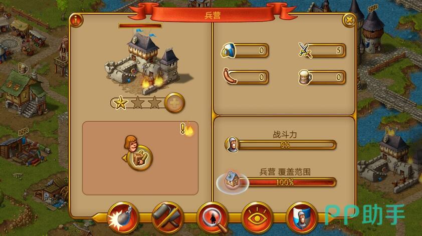 所以如果想要招兵扩充士兵的人员,就在城镇的各个区域建造守卫塔吧,居民穿上了装甲之后就会变成守卫的士兵。