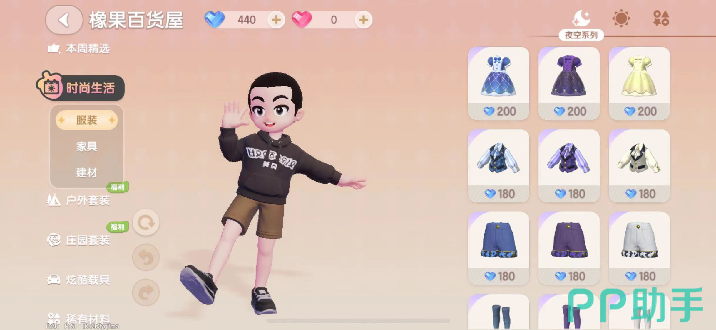 点击打开了橡果百货屋界面,其中会有很多商品出售,但并非所有种类都需要月光水晶购买。很多道具也是用其他货币来兑换的。目前在左侧项目中,明确用月光水晶购买的有“时尚生活”和“稀有材料”两个项目。