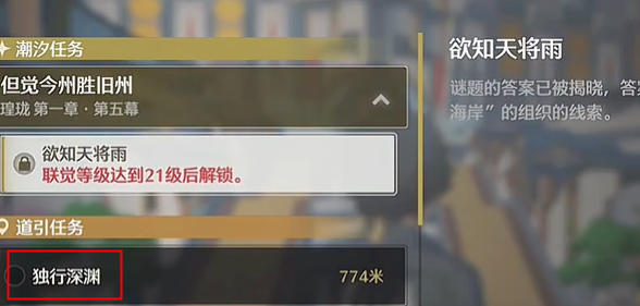 逆境深塔,不仅仅是一个用来练手的地方,它更像是一个宝藏库,里面装满了各种让人眼馋的奖励。无论是印记星声,还是那神秘的“深境记录”代币,都是对玩家勇气和实力的最好证明。玩家跟着游戏的指引,一步步完成那些道引任务,等到玩家的角色等级达到17级,独行深渊的任务就会自动解锁。