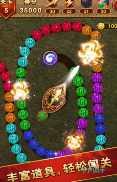 玩家将面对一系列色彩斑斓的珠子,这些珠子排列成一条蜿蜒的“长龙”,玩家的任务是通过精准的操作和策略,将这些珠子按照颜色进行匹配并消除。游戏的核心玩法简单直观,但挑战性十足。玩家需要迅速识别并匹配相同颜色的珠子,以防止珠子到达终点。随着游戏的深入,关卡的难度逐渐增加,珠子的种类和排列方式也变得更加复杂。为了帮助玩家应对这些挑战,游戏提供了多种道具和特殊技能,这些工具可以在关键时刻提供额外的帮助,增加游戏的策略性和趣味性。