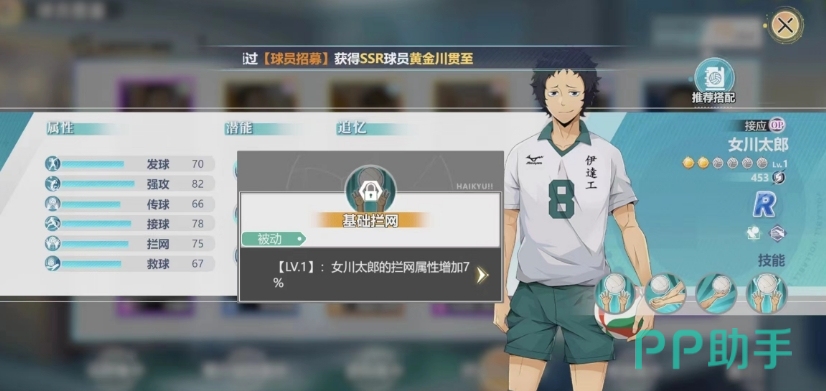 以上就是排球少年手游女川太郎怎么样的相关介绍啦,如果大家喜欢这样的女川太郎,就算他是一个R级的角色,只要大家掌握了以上的技巧就可以很好的使用这个球员哦。