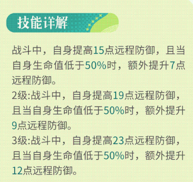 英雄专精:在战斗的初始阶段,埃隆拥有15点的远程防御加成。此外,一旦他的血量降至一半以下,这一远程防御还会获得额外的7点提升,从而增强了他抵御来自远处敌人的攻击。这种根据形势变化而增强的防御策略极大地提升了埃隆在战斗中对抗远程攻击的生存能力。