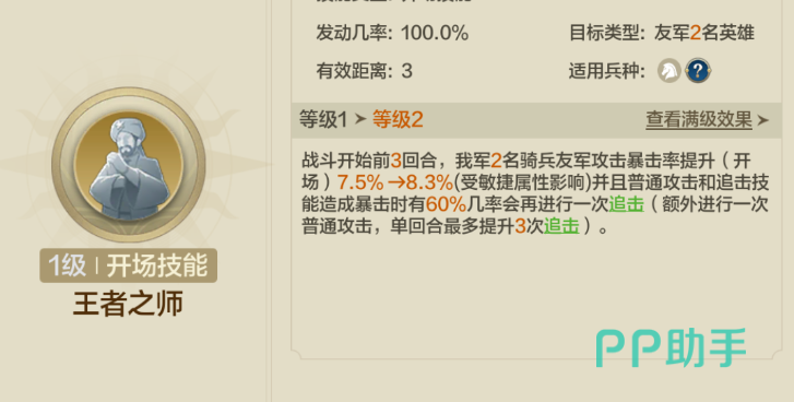 而作为输出类的英雄,在后面使用时大家是肯定需要让他顶在站场前方去打输出的,而不是给他放战场后方。了解定位后就要来看他的兵种了,他拥有骑兵兵种,对于这种兵种大家在后面使用的时候需要稍微注意一下。