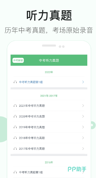 英语听力是很多初中生的短板,这款软件恰好能够弥补孩子们在这方面的不足。其中会为学生们准备丰富的真题测试,以及模拟中考现场的听力场景,让学生在完善听力训练的同时,也能够熟悉考场的真实氛围。在功能性方面,为了方便学生的操作,在设置列表当中添加了字体大小,语速快慢以及夜间模式等功能,提高了孩子们的学习效率。