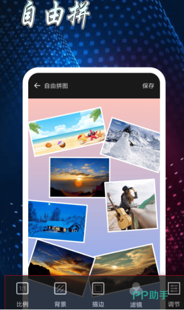 功能简单实用,不仅有100多种布局的照片拼贴,还可根据自己的需求来编辑图片,有滤镜、文本、贴纸、涂鸦等等一系列的功能,全程助力拼接出个性的照片。支持多达20张照片的自由拼图,有上百种风格的布局都可免费使用,而且还有上百种艺术相框让用户选择,以及100多种高质量的滤镜,还可在照片中添加不同风格的艺术字样。