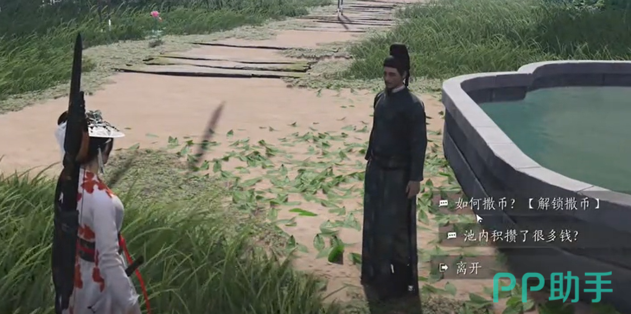 在功德池的旁边,会有一位叫燕钱的NPC,只要与这位NPC对话,就能问他如何撒币了,他会给你解锁这一个表情姿态。