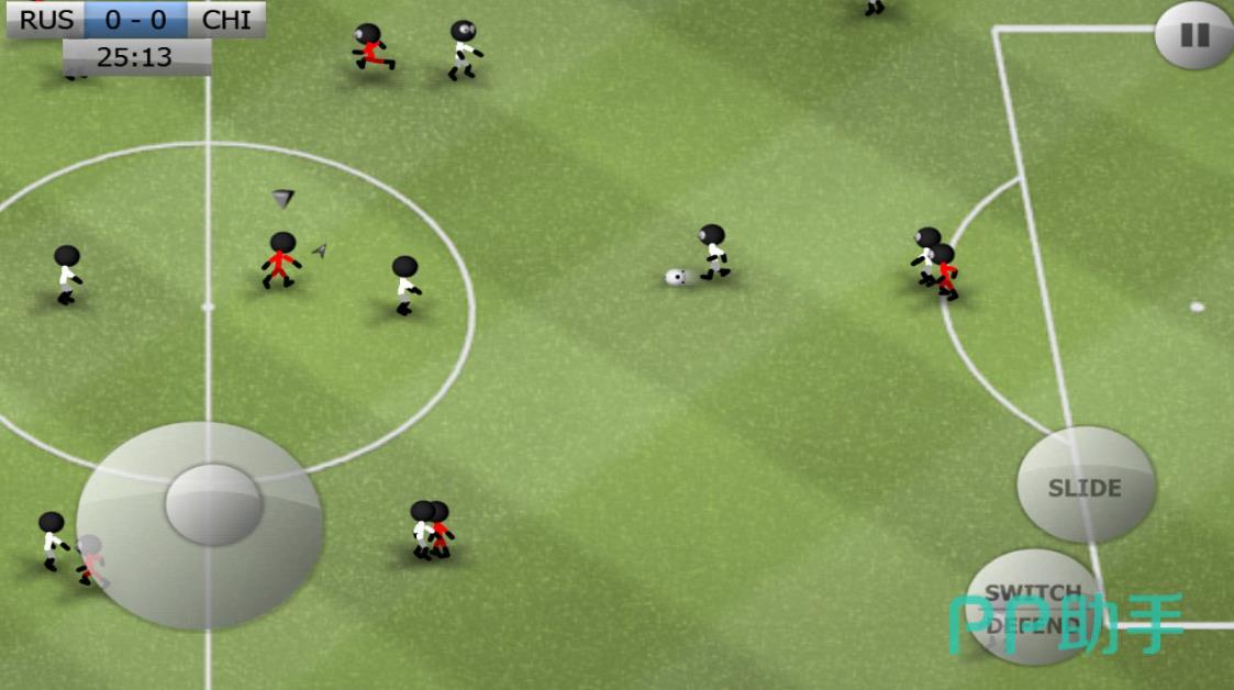 想要扮演一个火柴人在游戏中踢一场足球吗,在《火柴人足球》里来一场最难忘的足球游戏吧。游戏一贯保持着火柴人简约的风格,在球场上除了服装颜色不同,都拥有同样的外形,画面虽然有些简陋,但作为一款足球游戏该有的要素可以说样样俱全。操作上也是十分的简单,左摇杆控制移动,右按键控制传球和射门,操控你的火柴人上演一场帽子戏法吧。