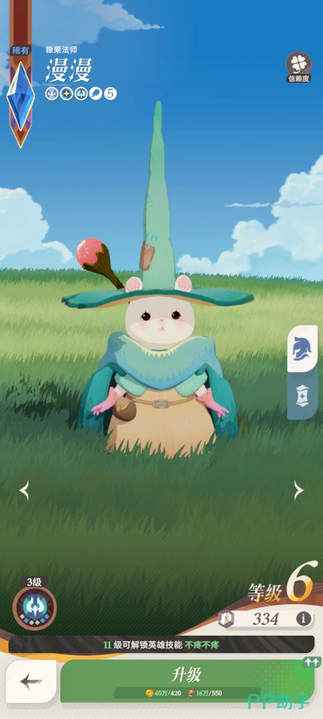 漫漫在游戏中的称号是橡果法师,自身外观可爱,戴着一顶高高的帽子,技能方面非常简单,只有三个技能可以使用。第1个是必杀技爆炸火花,蓄力后发射一个火球,对敌人造成伤害,伤害,最多能达到攻击力的340%,从伤害数值方面来看还算优秀。