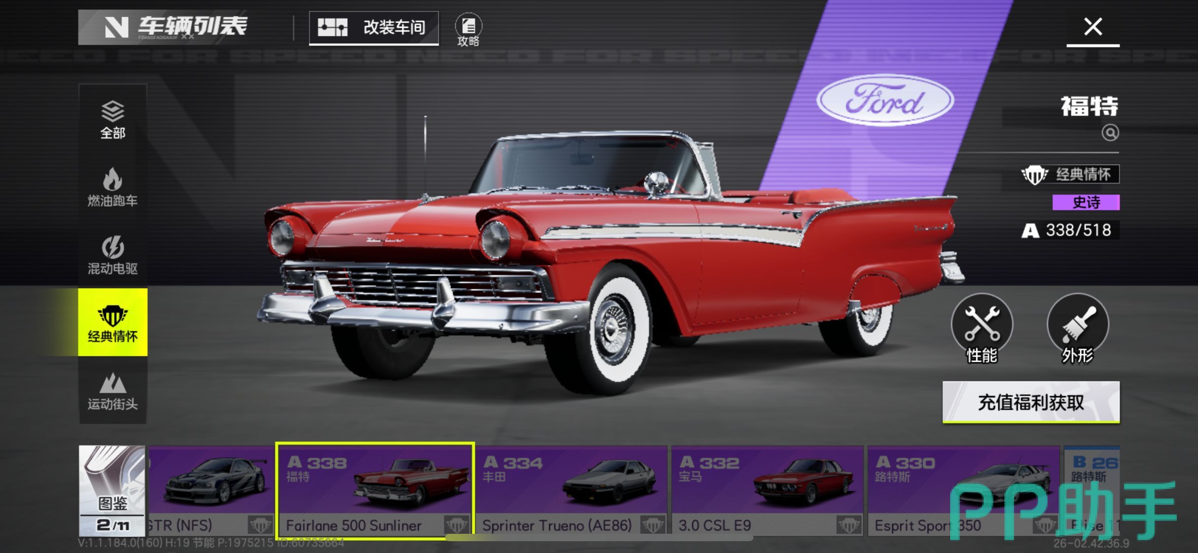 经典情怀是极品飞车集结中的一个系列,这个系列中的车大多都是比较经典的车,每个车的外型都有各自的特殊,而且大多都非常出名,而具体有什么车可以看上面的图片。而在竞速模式中,这些车将会单独作为一个组别来比赛,大家便可以选择自己喜欢的经典车与其他玩家的经典车来一场酣畅淋漓的竞速赛了。那么,这个组别的车有什么推荐吗?