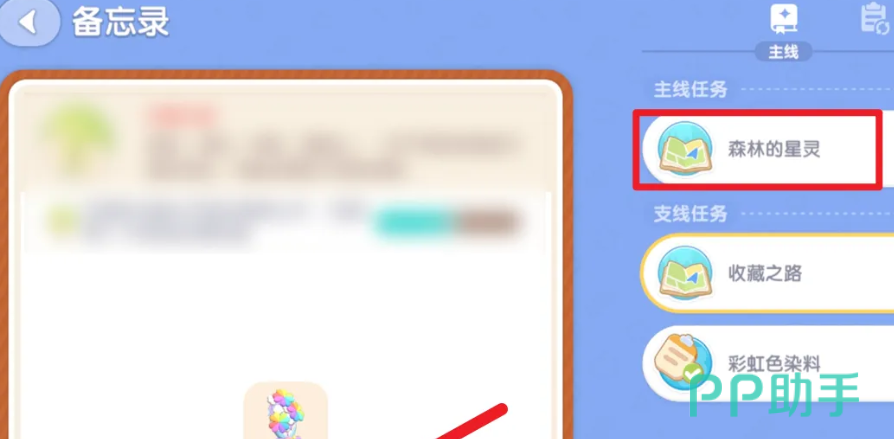 玩家在进入到游戏之后马上进入到备忘录,就马上点击森林的精灵。进入到跳跳台的位置,只需要通过按键的方法就可以迅速的起跳。
