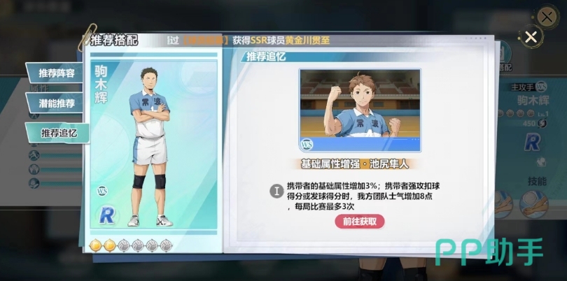 目前在排球少年中大家如果要想组建阵容的话,首先就要选择一个主攻手,正好本期小编为大家带来的也是一位主攻选手,今天的主题就是排球少年手游驹木辉怎么玩的介绍,了解以下的介绍之后,大家就可以充分利用池尻隼人的潜力,从而在比赛中获得更多优势啦。