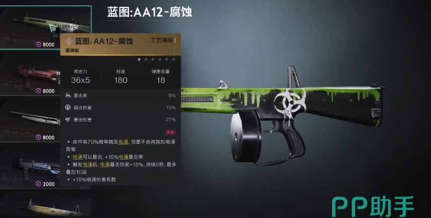 top3-AA12腐蚀:近战之神,这是一把培养下限极低的武器,枪械伤害来源电涌,而电涌还可以暴击,基础就可以增加15%的电涌暴击率,同时还能和自身装备的暴击概率相叠加。在实战的测试中,暴击的伤害甚至还超过了电涌的伤害,在走暴击流的前提下可以打出非常稳定的输出。唯一的缺陷就是在打副本忘却之主时,会比较吃力。