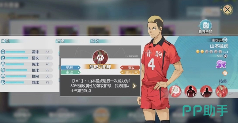 关于排球少年手游山本猛虎怎么样的介绍大家就可以一起来查看啦,如果大家喜欢这个角色的强攻效果,本期介绍大家就不要错过,他的效果在SR级别的球员当中还算是好用的,大家自己也可以尝试搭配其他的角色使用哦。