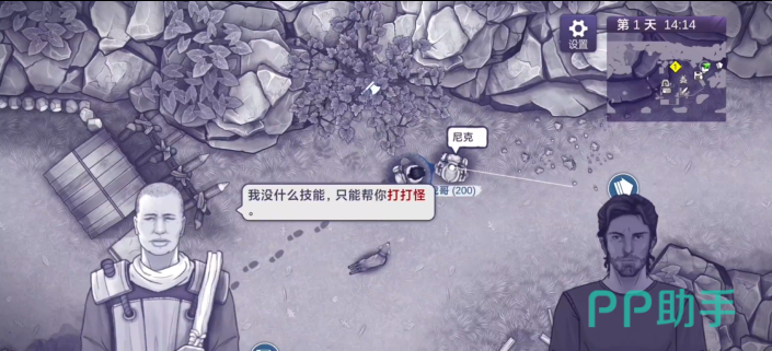 虎哥作为一路陪着玩家们的NPC,在玩家进入游戏的第一天,玩家便可以在初始营地的右侧发现其的存在,通过与其对话,玩家会发现虎哥并不需要玩家为其提供什么,而是会帮助玩家打怪,使玩家能够更好的在末世生存下去。