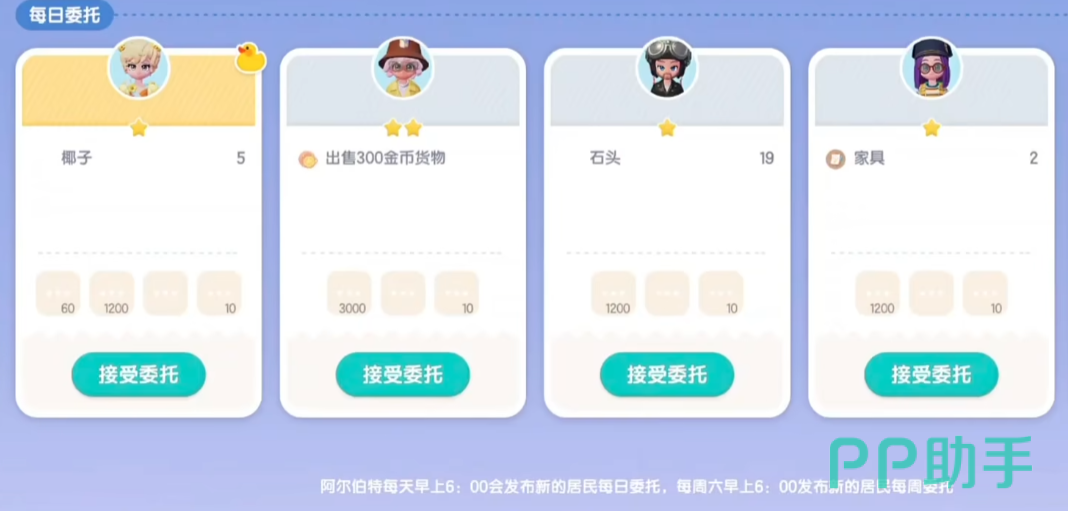 最后大家也可以不定时的去多检查一下地图中的提示,说不定会有新的任务机会等着你去发现,那么关于”心动小镇快速完成委托任务心动小镇如何快速完成委托任务“就为大家介绍到这里了,完成这些委托任务可以获得许多游戏中的货币和经验值,能够帮助大家推进游戏中的进程,提升大家的体验感哦,那咱们下期再见吧。