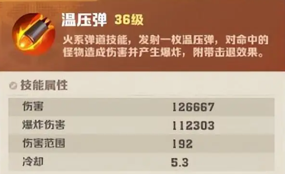 温压弹可以获得41%的热能燃爆增幅,是指在爆炸的一瞬间可以给敌人造成额外的燃烧伤害有较高的热能。可以增加30%的爆炸伤害,整体来说爆炸的威力比较强大,可以造成要比普通弹药更加可怕的伤害。增加30%的射击速度,使得玩家就可以迅速地应对每一个敌人。