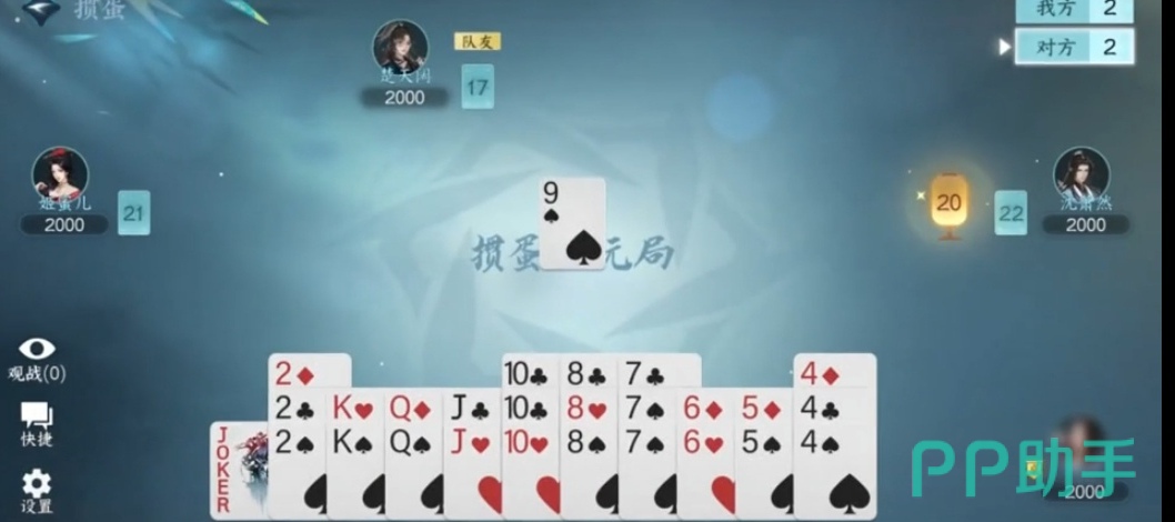 在掼蛋的玩法中,其实与斗地主以及四川麻将的玩法类似,大家需要选择固定的掼蛋桌,采用二对二的形式,一共有108张牌,每一位玩家可以拥有27张排,采用逆时针的顺序来进行出牌,大家的对面就是自己的队友,在刚开局时,玩家们需要随机的选择。一名玩家进行出牌,而其他的玩家只能跟排出最大的牌型或者炸弹同花顺等,如果没有人跟排,就可以选择任意的阵型,而单张的大小顺序,其实和大家斗地主的顺序是一样的,游戏中还有两张点数相同的对子,以及三张点数相同的对子。